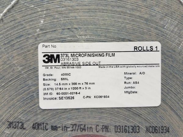 1 Roll, 3M 373L Microfinishing Film, 60-0001-0216-4, 0.578in × 1200ft × 3in, SKBAWA-B000