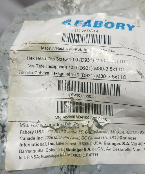 Lot of 12 FABORY Hex Head Cap Screw ,Alloy Steel, 10.9(D931) M30-3,5×110