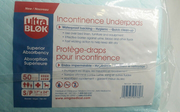 UltraBlok™ Incontinence Underpads for Medium to High Absorbency provide effective bed or chair protection, absorbing leaks, reducing odors and maintaining dryness.