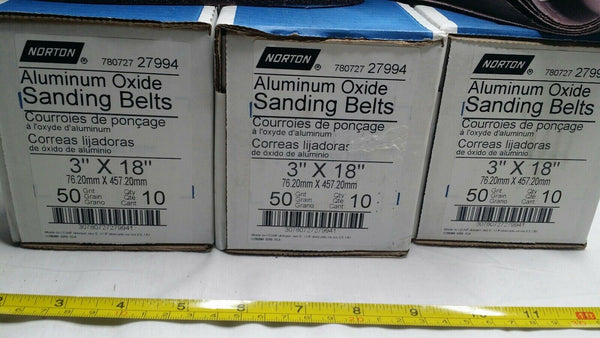 40 PCS, Norton Aluminum Oxide Sanding Belt, 3" × 18", 50 Grit, SKBAWA-B000