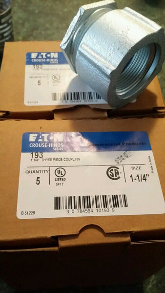 5 pcs, Eaton CROUSE HINDS 193, 1-1/4 3PC CONDUIT COUPLING