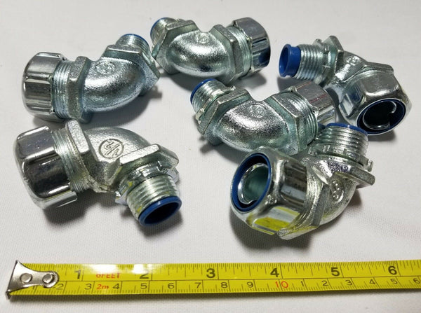 Box of 6, T&B Fittings,1/2" Flexible, Metal Conduit, 90°, 5352, SKBAWA-B014
