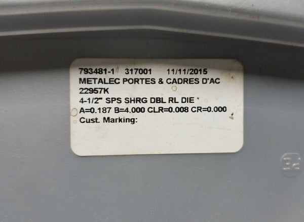 Amada 4-1/2" SPS SHRG DBL RL Die, .187 × 4.000, (+.008), 22957K, SKBAWA-B000