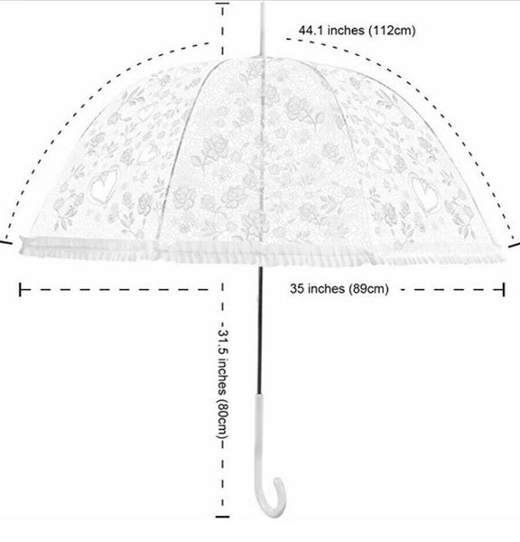 Never miss Becko’s transparent bubble umbrella with flower and heart pattern in a rainy day. Decorated with lace edge, it adds romance and beauty to a wedding or travel.