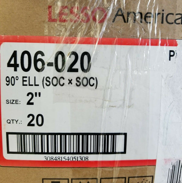 Box of 20 pcs Lesso America 2" PVC 90° ELL - (406-020) SCH40 Fittings, SKBAWA-000