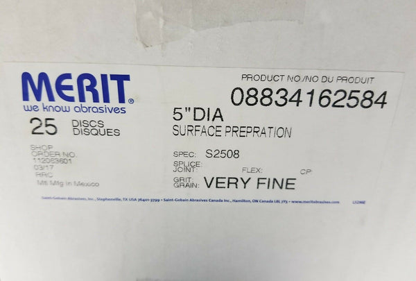Box of 25, Merit 08834162584, 5" Surface Prep Disc, Very Fine, SKBAWA-b083