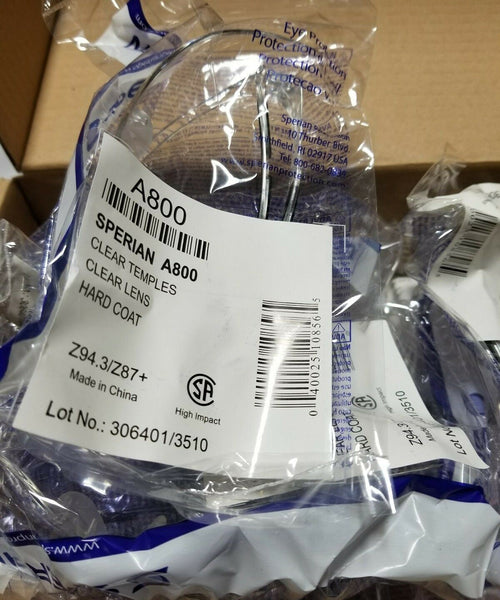 Box of 9 Sperian A800 Hard Coat, Clear lens, clear temple Glasses, SKBAWA-B029