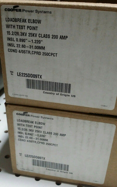 COOPER LOADBREAK ELBOW, LE225DD09TX, WITH TEST POINT 25KV 200 AMP