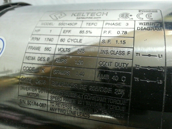 KELTECH SS0145CP, Stainless Steel Motor, HP- 1, 1740 RPM
