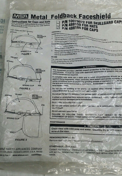 Lot of 2, MSA, Metal Foldback Faceshield Frame, 4MD88, 488160, SB-00