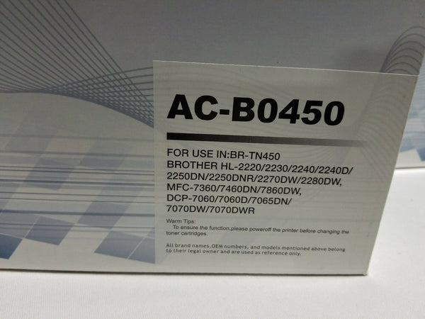 Lot of 2 Premium Toner Cartridge AC-B0450 Black for use in BR-TN450, SKBAWA-000