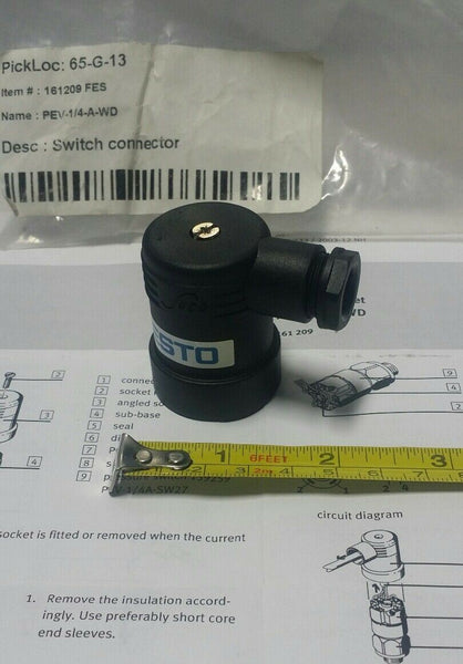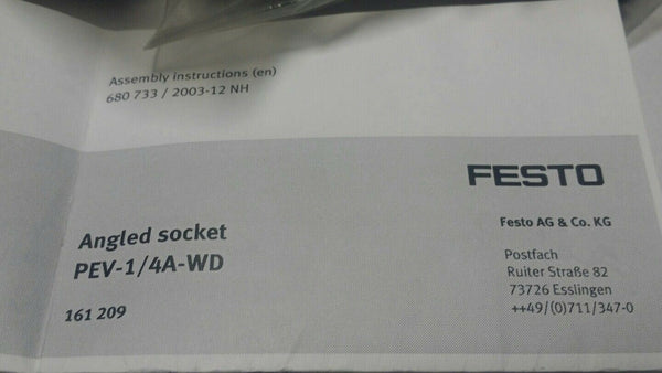 Lot of 3, Festo, 161209, Angled plug socket PEV-1/4-A-WD