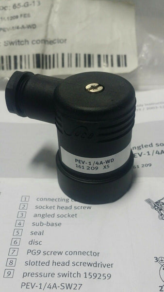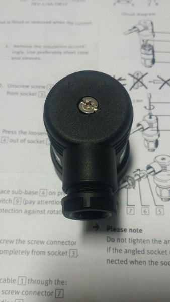 For pressure switches. Protection class=IP65 Ambient temperature=-40 - 90 °C Electrical connection=(* Plug socket angled *) Mounting type=with through hole Materials note=Conforms to RoHS