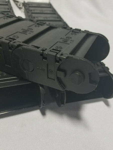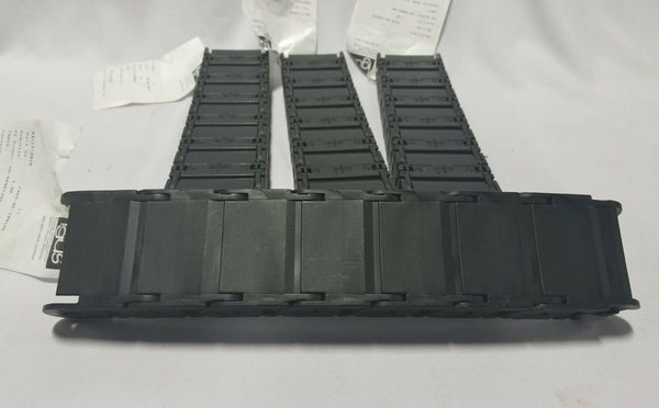 Cable and Hose Carrier, Type Medium, Style Enclosed, Outside Width 2.87" / 73mm, Cavity Width 2.24" / 57mm, Cavity Height .98" / 25mm, Link to Link Pitch 1.81" / 46mm, Number of Links 7, Loop Length 16.30" / 414mm, Loop Height 9.25" / 235mm, Height 1.38" / 35mm, Length 1', Bend Radius 3.94" / 100mm, Package Quantity 1