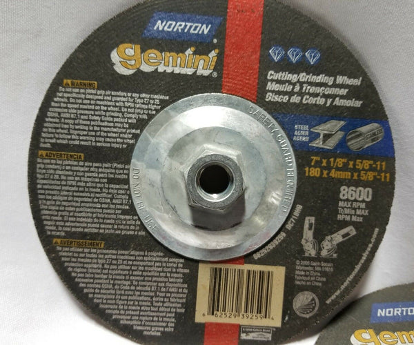 Lot of 5, Norton Gemini, Grinding Wheel, 7" × 1/8" × 5/8"-11, SKBAWA-B000