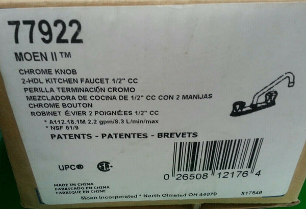 Moen 77922 Moen II 2-Knob Handle Low-Arc Swivel Spout Kitchen Faucet, Chrome